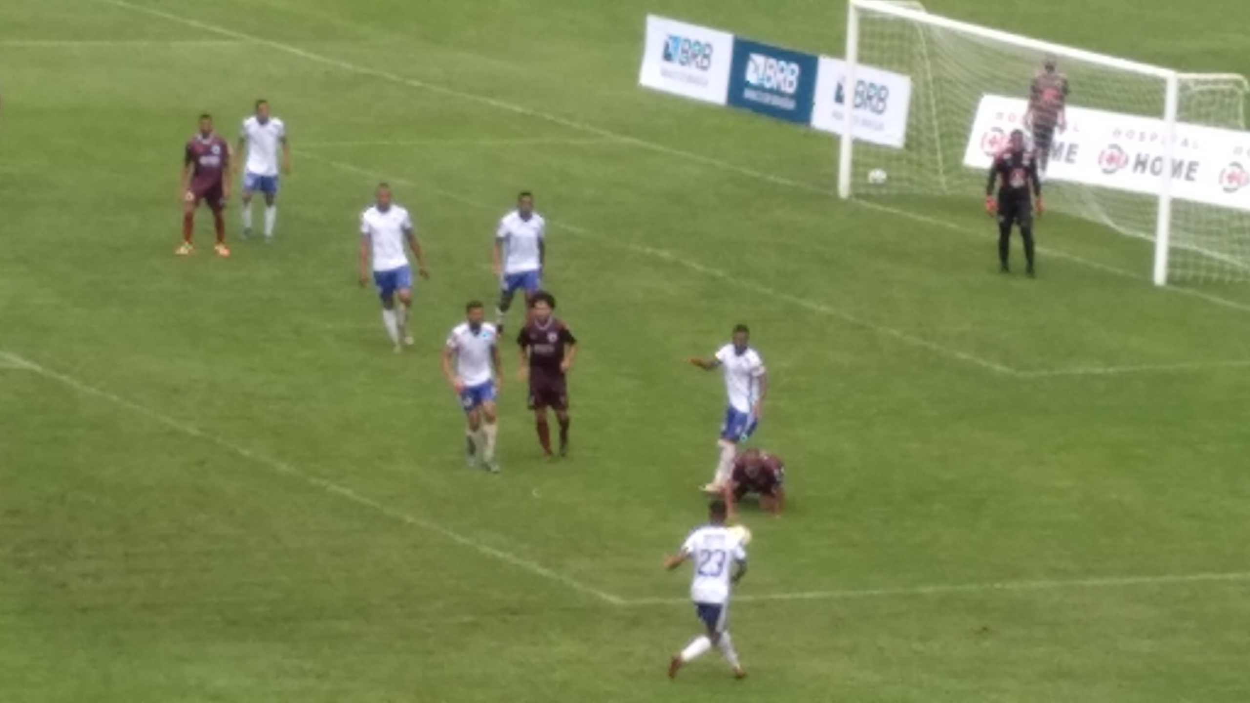 Aos 24, Paulinho avançou pela direita, bateu pro gol e o goleiro Lucas Diniz espalmou. Na volta, Paulinho mandou pra fora e perdeu a chance de empatar o jogo.