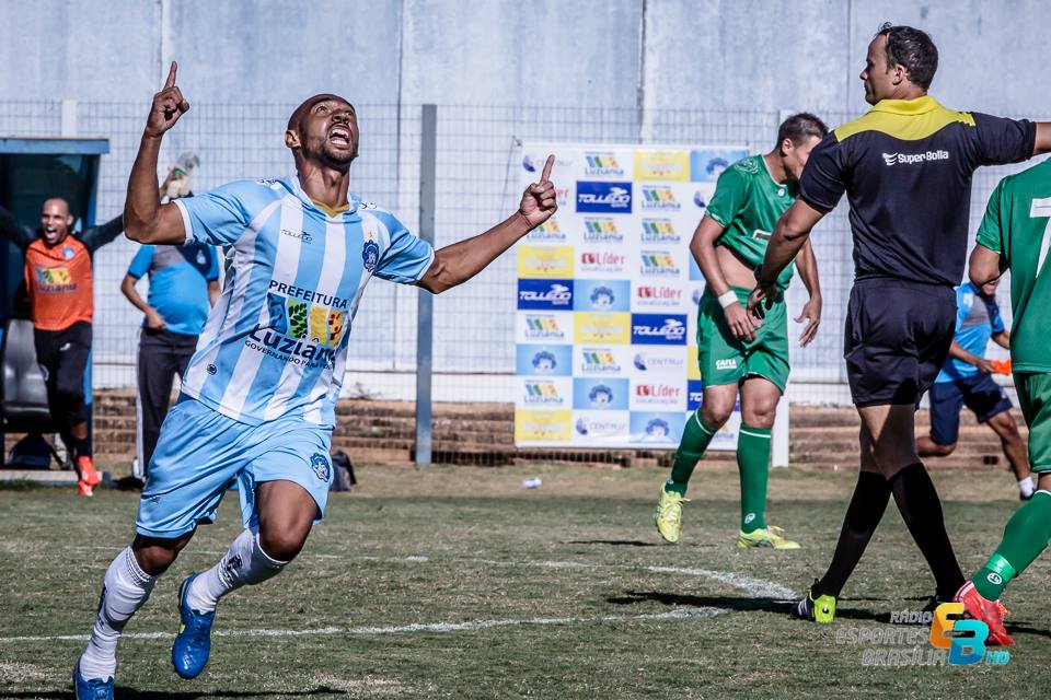 Aldo comemora gol de abertura do placar para o Luziânia, na primeira chance que o azulino teve – Foto: Carlos Teixeira/Agência EB