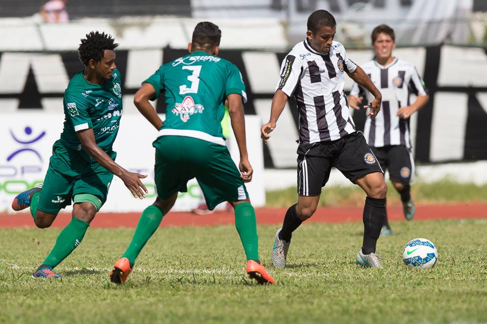 Márcio Fernandes, goleiro do Formosa, se esticou todo e conseguiu salvar o que poderia ser o gol do Sobradinho. No fim, 0x0 no placar – Foto:...