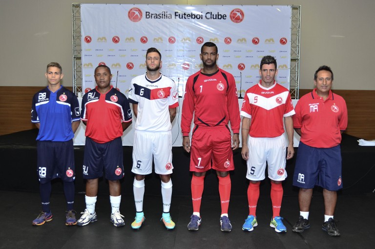 Jogadores do Brasília se apresentaram nesta segunda-feira. Diretoria confirmou que mandará os jogos no Mané Garrincha – Foto: Ricardo Botelho/Divulgação/Brasília FC Na apresentação do Brasília Futebol...