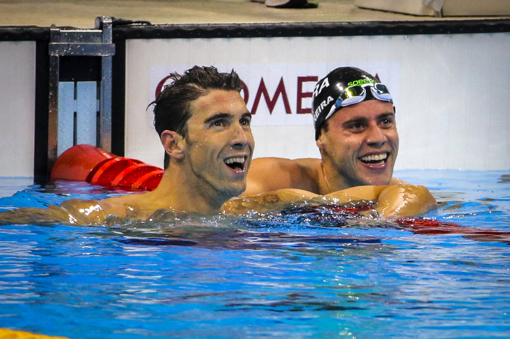 O brasileiro brigará pela medalha nesta quinta-feira (11), por volta das 22h, e terá a difícil tarefa de vencer a lenda do esporte, Michael Phelps, que se classificou com o melhor tempo da prova (1’55″78).